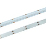 Taśma LED COB emituje bardziej jednolite, jasne i delikatne światło, eliminując efekt widocznych punktów świetlnych, który występuje w tradycyjnych taśmach LED. Zastosowanie taśmy COB jest bardzo szerokie. Doskonale sprawdza się w oświetleniu wnętrz, gdzie może być używana do podświetlania sufitowych wnęk, mebli, schodów czy półek, tworząc przyjemne i estetyczne efekty świetlne.