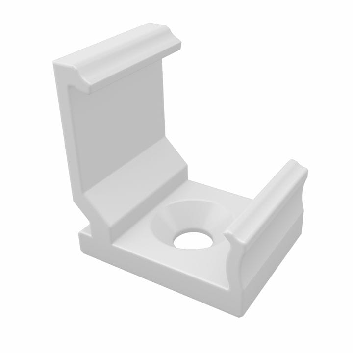 Plastikowy uchwyt montażowy do profilu LED aluminiowego typ C oraz do profilu aluminiowy typ H marki Lumines, w białym kolorze.