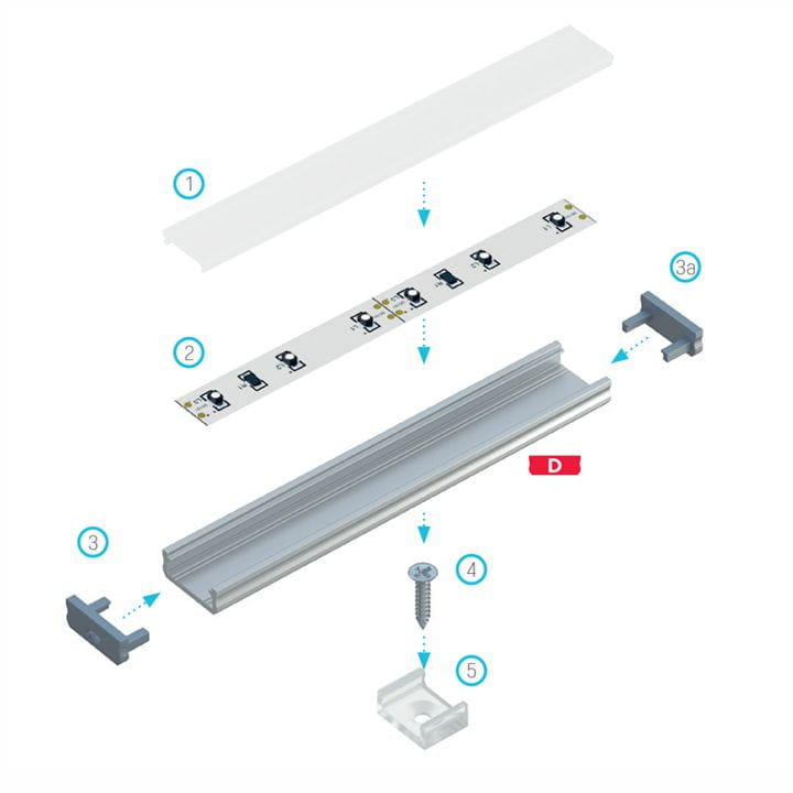 Uchwyt ułatwiający mocowanie profilu nawierzchniowego typ D, marki Lumines do wybranej powierzchni, wykonany z mocnego plastiku.