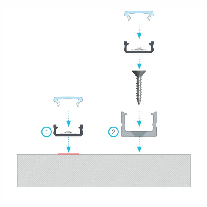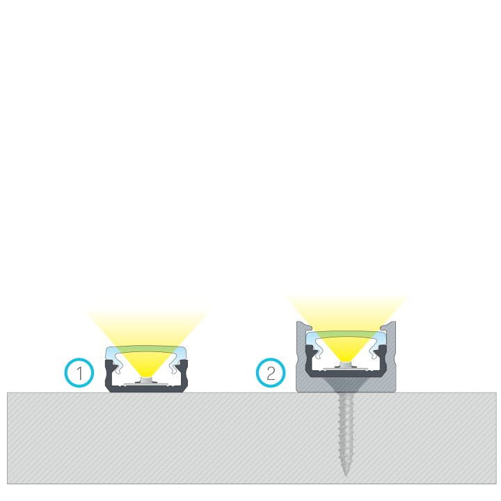 Uchwyty montażowe to akcesoria, które ułatwiają mocowanie i demontowanie profilów aluminiowych z wybranych powierzchni. Po zamontowaniu uchwytu, wystarczy umieścić w nim profil, wciskając go do środka.