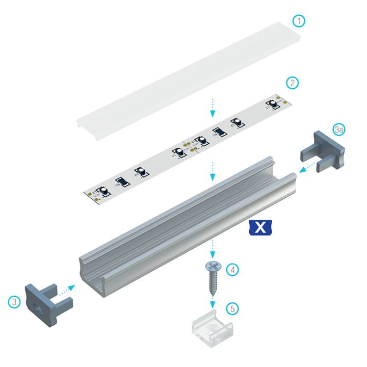 Biały uchwyt, który ułatwia montaż i demontaż profilu LED aluminiowego typ X.