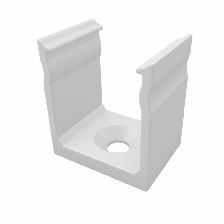 Plastikowy uchwyt do profilu Lumines typ Y w kolorze białym, ułatwiający montaż profilu do powierzchni.