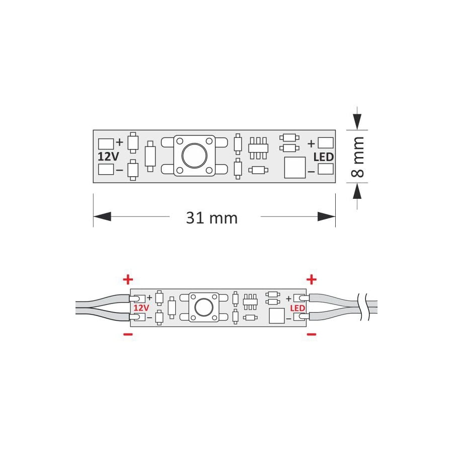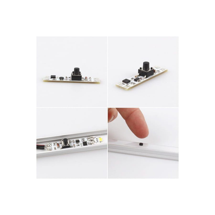 Włącznik dotykowy do taśm LED jest przeznaczony do montażu w profilu aluminiowym led. Wymaga zrobienia małej dziurki w kloszu aby móc uruchamiać włącznik. Dzięki niemu możemy włączyć i wyłączyć światło w jednokolorowych taśmach mono na napięcie 12V 5A 60w