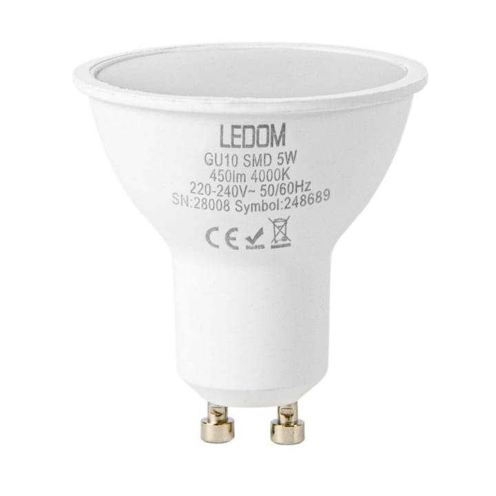 Żarówka LED GU10 marki LEDOM o szerokim kącie świecenia 120° jest idealną żarówką do oświetlenia wewnętrznego ciepłą barwą światła.
