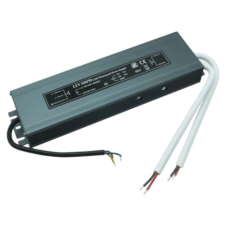 Zasilacz LED w obudowie hermetycznej o mocy 300W na napięcie 12V, w wersji slim.