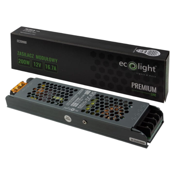 Zasilacz modułowy premium o dużej mocy 200W działający na napięcie 12V, w obudowie półotwartej slim.