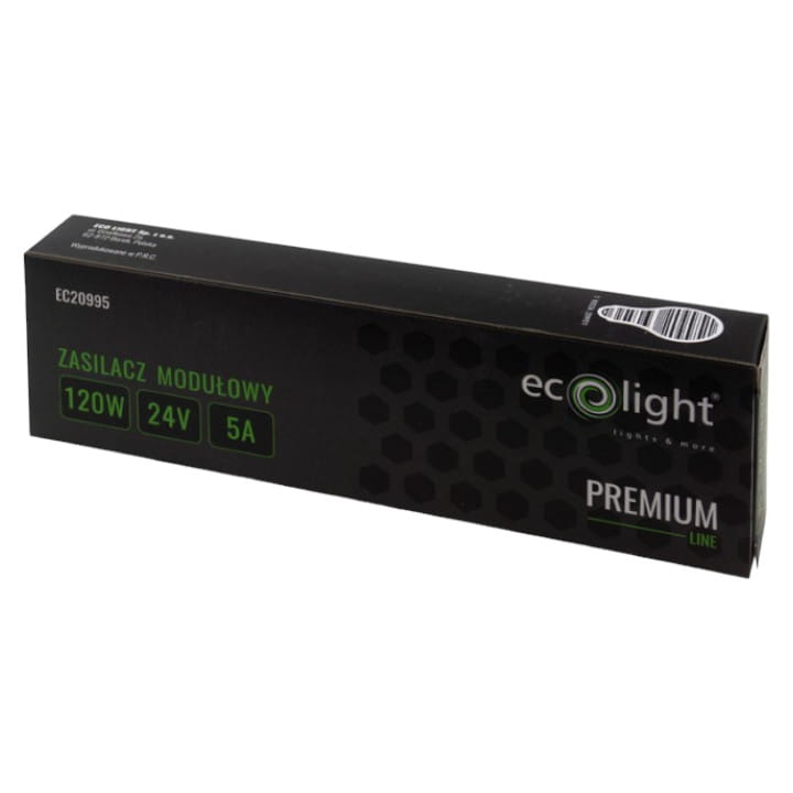 Zasilacz modułowy slim LED 120W na napięcie 24V, w obudowie półotwartej, w wersji premium.