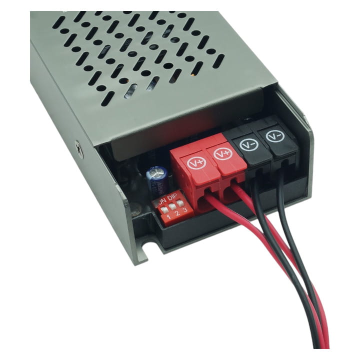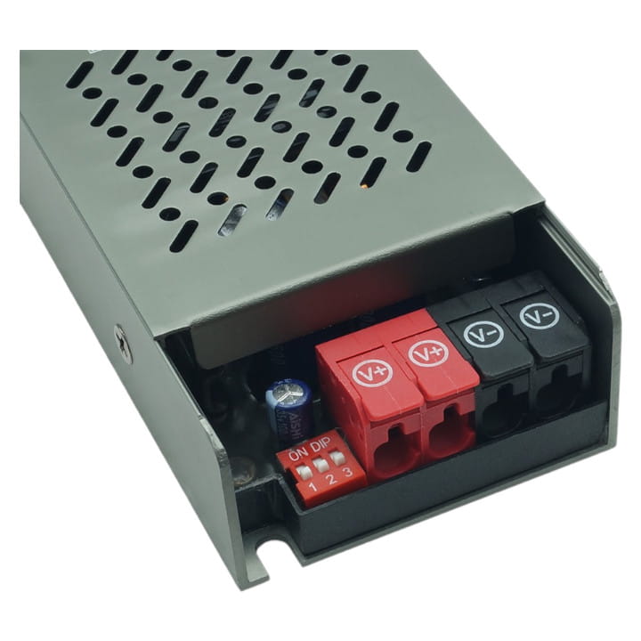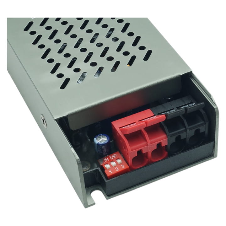 Zaprojektowany jest do zasilania oświetlenia LED o napięciu 24V, w tym także taśm LED. Dzięki perforowanej obudowie, chłodzenie zasilacza odbywa się za pomocą swobodnego przepływu powietrza. Jego modułowa konstrukcja pozwala na łatwy montaż zarówno na powierzchniach pionowych, jak i poziomych. Dodatkowo, zasilacz oferuje funkcję miękkiego startu (SOFT START).