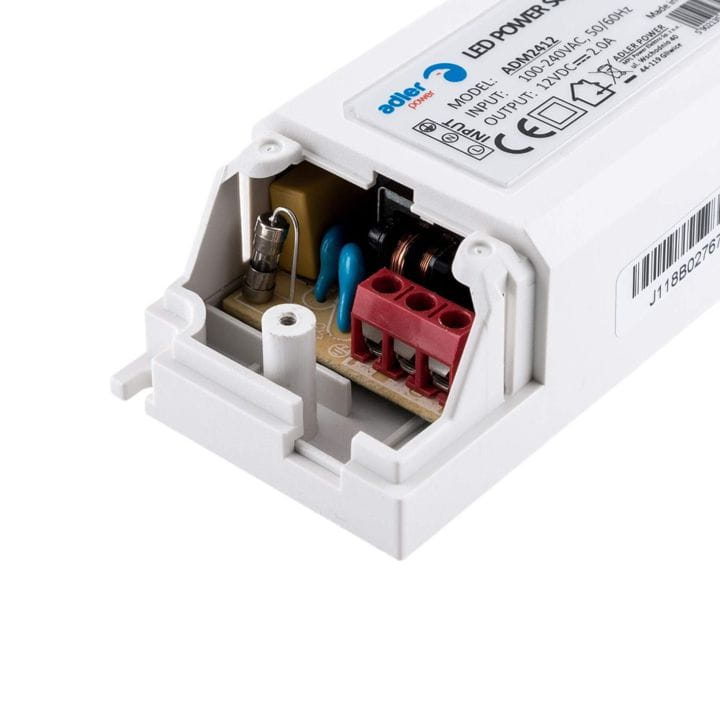 Zasilacz Adler ADMX dzięki swojej bezpiecznej obudowie, sprawdzi się miejscach o niewielkiej wilgotności w zamkniętych sufitach z GK, w specjalnych puszkach montażowych oraz w szafkach meblowych.