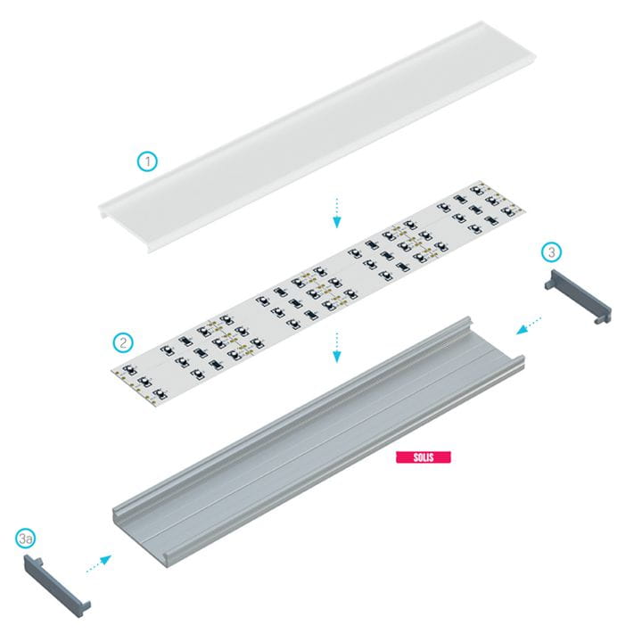 Dekoracyjne zakończenie dedykowane do profilu aluminiowego SOLIS marki Lumines, które zapewnia estetyczny wygląd.