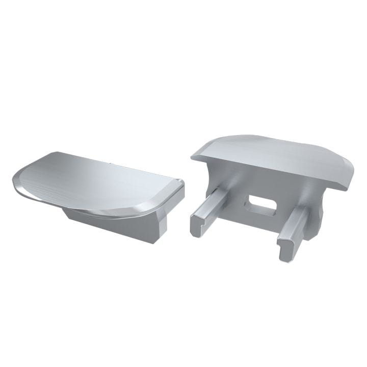 Plastikowa zaślepka marki Lumines do wpuszczanego profilu typ-B w kolorze srebrnym anodowanym lub srebrnym surowym, posiadające zaokrąglone zakończenie.